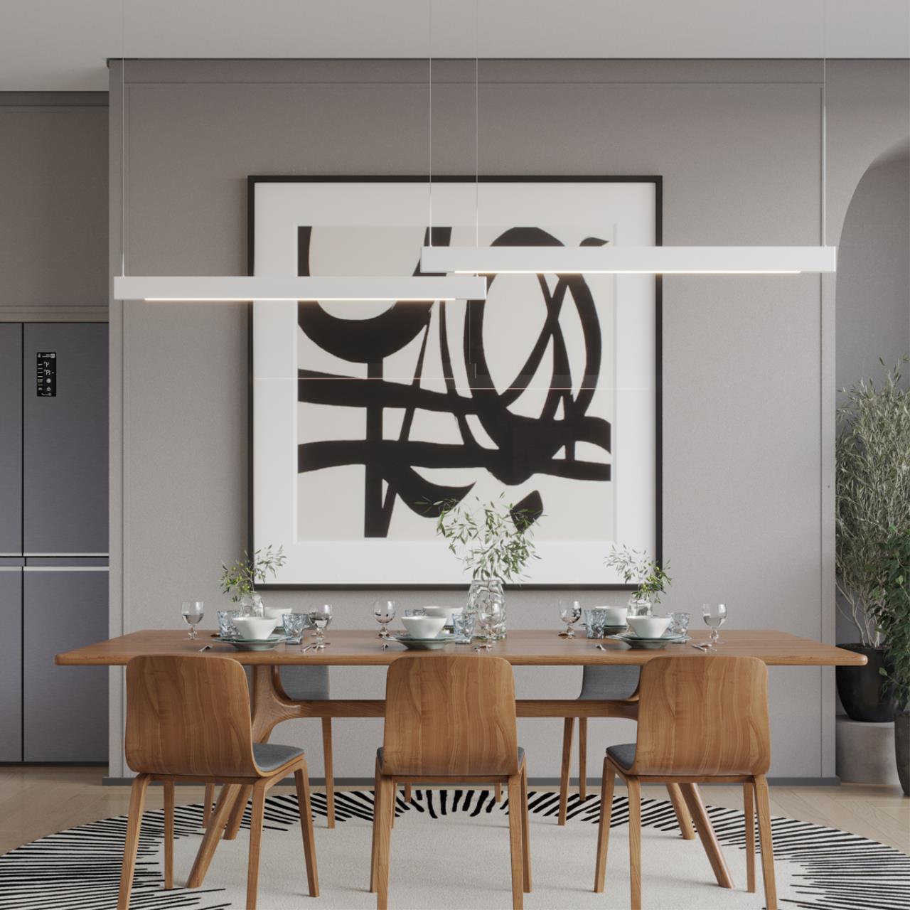 Подвесной светодиодный диммируемый линейный светильник ITER с регулируемой цветовой температурой (3000 - 6000К). Управление – пульт ДУ (арт. 358637) или приложение Smart Life. Светильник использует протокол TUYA Bluetooth, который не поддерживает прямое подключение к вашему домашнему Wi-Fi-маршрутизатору. Для подключения светильника к интернету через Wi-Fi и управления им через приложение или голосового ассистента необходим умный шлюз (арт. 359392). Шлюз служит «мостом» между Bluetooth-устройствами и вашей сетью Wi-Fi, обеспечивает простое и гибкое управление освещением, включая создание автоматических процессов и замедление работы по расписанию. Идеально подходит для размещения в кухне над обеденным столом. Это поможет создать мягкое и широкое освещение для уютных ужинов или встреч с друзьями. Прекрасно подходит для офисных пространств. Над столом в конференц-зале, он обеспечит освещение всех участников встречи.
