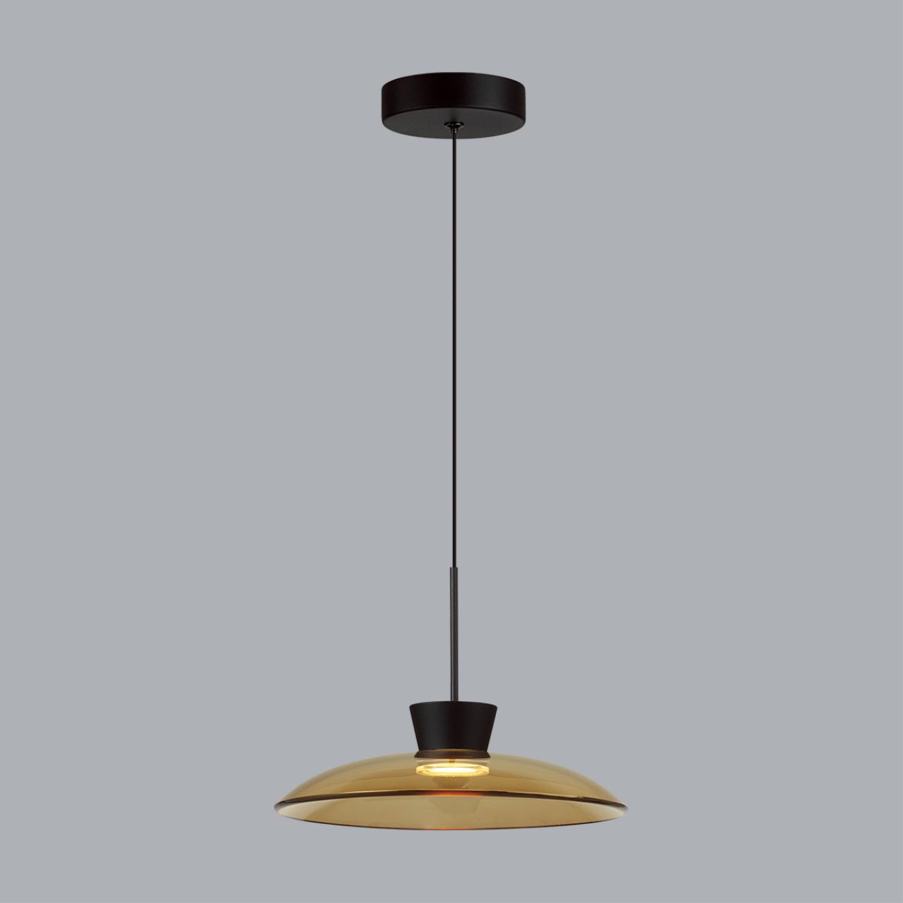 Стеклянные светодиодные подвесы Saucer представлены в двух цветовых решениях: дымчатый с черным и янтарный с черным. Цветовая температура 3000 К (теплый свет).