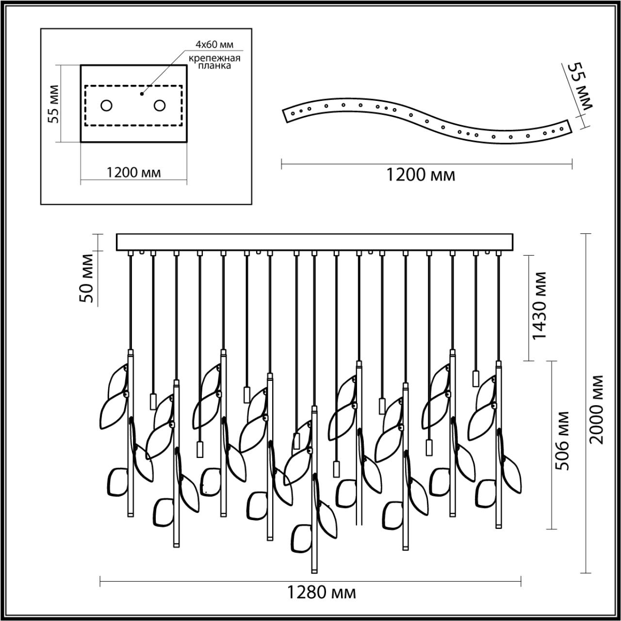| Светильник Длина, мм | 1280 |