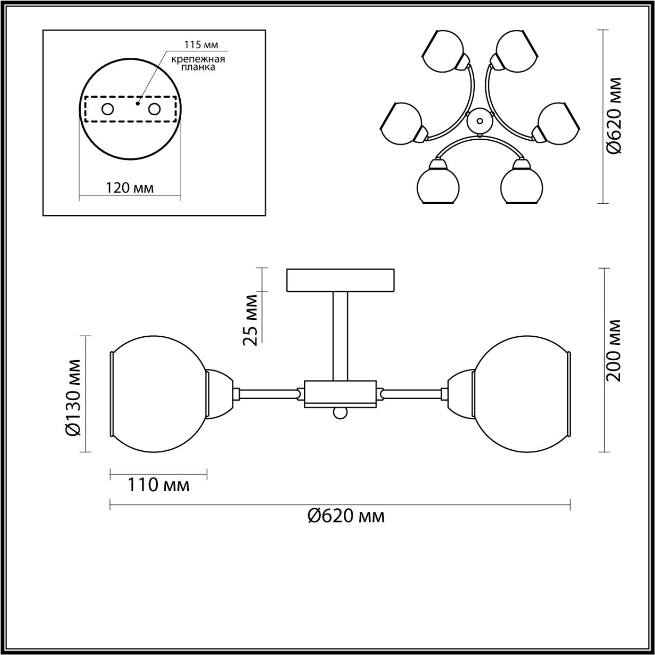 | Светильник Диаметр, мм | 620 |