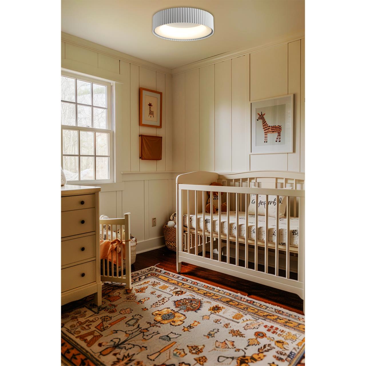 В линии SHARMEL светодиодный контур располагается по окружности светильника, обеспечивая как рассеянный свет, так и отраженный, так как свет отражается от внутренней поверхности светильника, выкрашенной в белый цвет. Таким образом, не смотря на кольцевую форму светодиодного модуля, светильник полностью выполняет свою функцию источника света. Не смотря на свою простоту, светильник смотрится стильно и современно за счет плисированного металлического корпуса. Линия SHARMEL представлена в четырех модных цветах: белом, черном, дымчато-сером и кофейном мокка. Крепление — металлическая крестовина. В светильнике белого цвета на задней панели находится переключатель, благодаря которому можно установить предпочитаемую температуру цвета перед монтажем светильника на потолок.