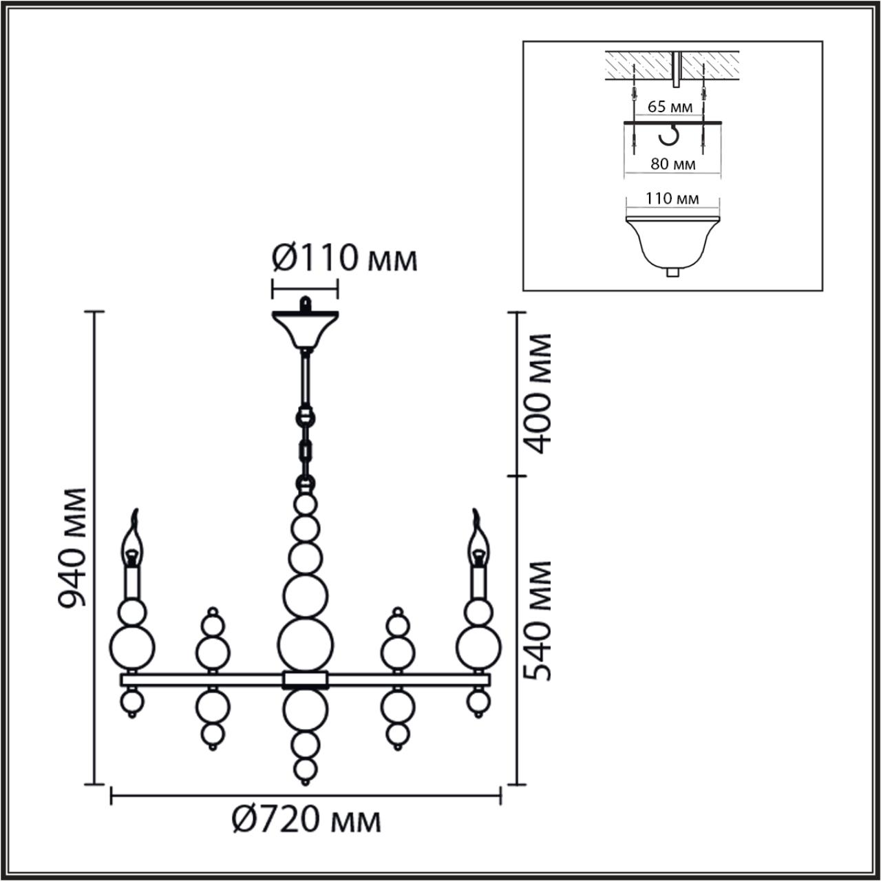 | Светильник Высота без цепи, мм | 540 |