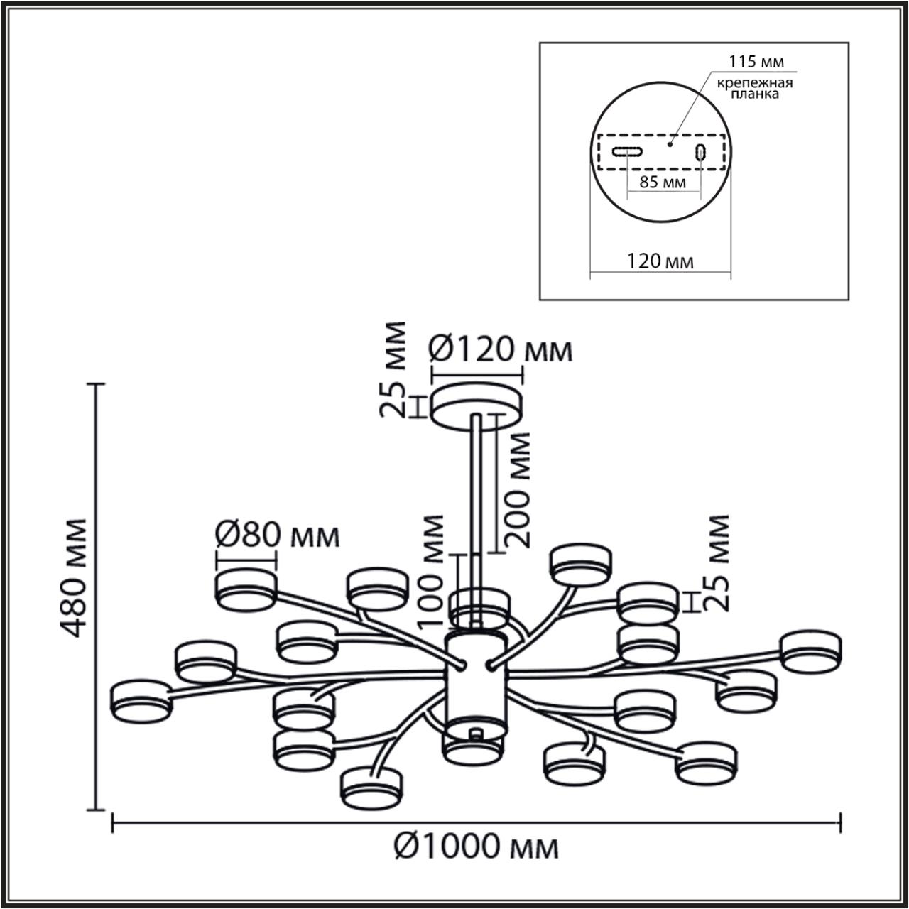 | Светильник Диаметр, мм | 1000 |