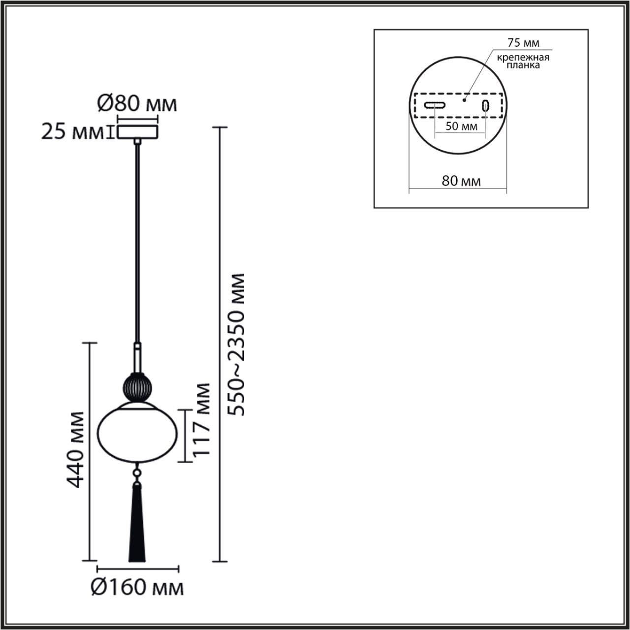 | Светильник Высота без цепи, мм | - |