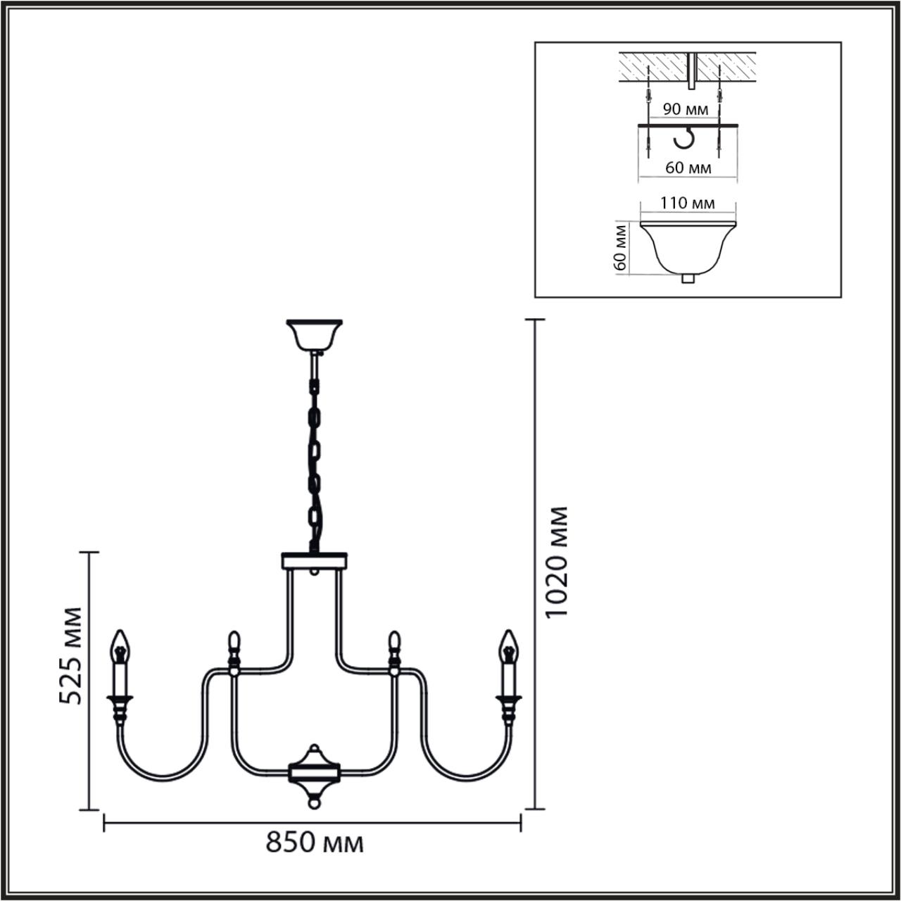| Светильник Высота без цепи, мм | 525 |